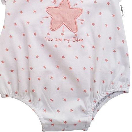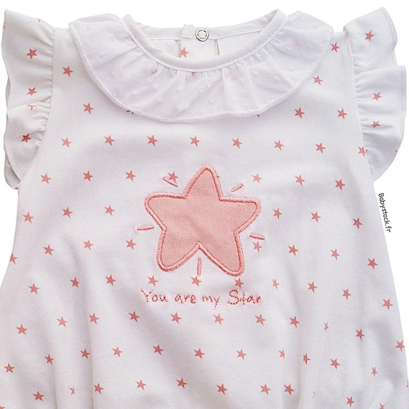 Barboteuse bébé fille en jersey coton blanc brodé Etoile rose Fille Liste d'envies Une barboteuse pour une petite Star (3 mois) ! Combicourt pour bébé fille en jersey très fluide 100% coton blanc imprimé étoilé rose, application brodée d'une étoile rose avec inscription "you are my Star" (tu es ma star), collerette en voile blanc à plumetis, petites manches froncées forme "papillon", pressions dans tout le dos et l'entrejambe, élastiquée aux cuisses. Composition : 100% coton, lavable à 30°. Fabriqué en Europe (Portugal) Taille 3 mois (60 cm) Taille En Stock : Expédié en 24/48h Infos sur la livraison et les frais de port 10.99 € Quantité AJOUTER AU PANIER Votre article a bien été ajouté au panier Quantité : × Partager et faites découvrir cet article par mail Vous souhaitez faire connaître ce produit à vos ami(e)s ?Inscrivez simplement leurs noms, prénoms, e-mails et votre message d'accompagnement.Ils pourront ainsi venir directement sur la page que vous avez sélectionnée. Nom(s) et/ou prénom(s) de vos ami(e)s E-mail de vos ami(e)s Votre nom et/ou prénom Votre E-mail Votre message d'accompagnement (1000 caractères maximum) : Nombre de caractères restants : Ne remplissez pas cette case