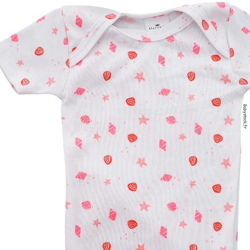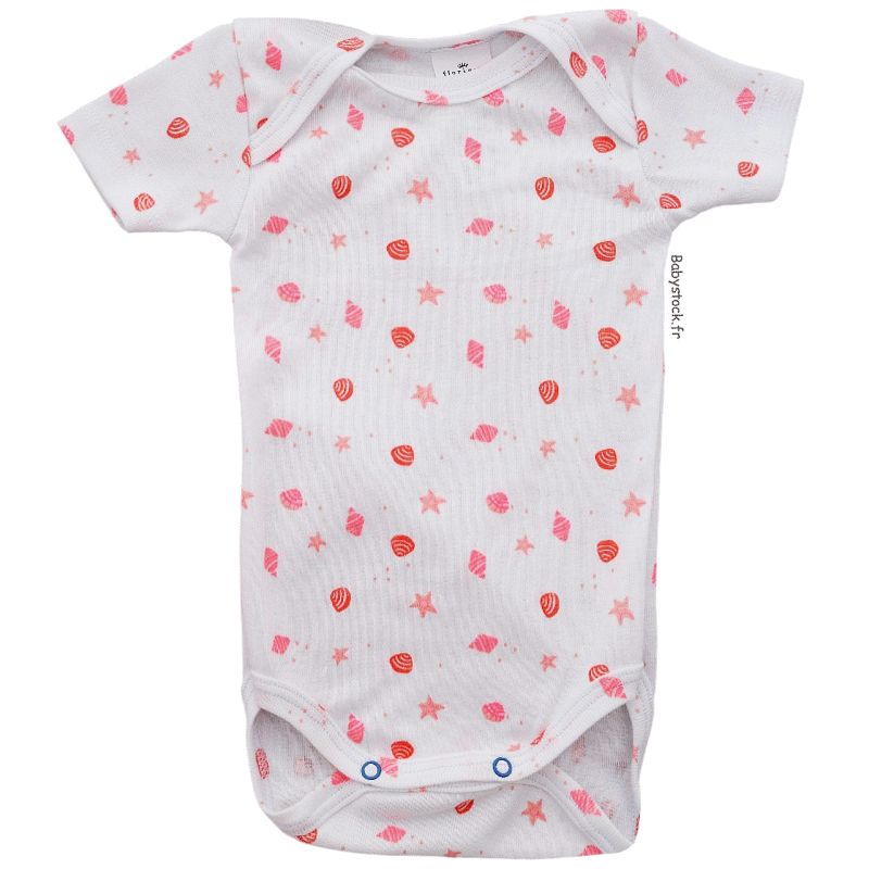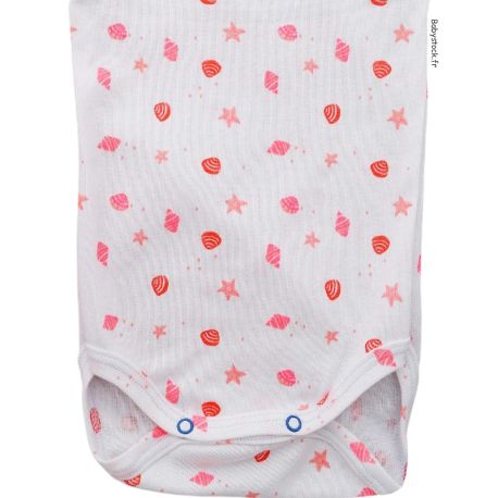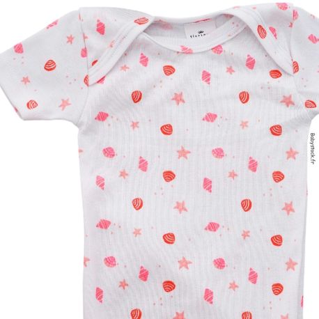 Body bébé fille manches courtes en coton blanc imprimé coquillages roses