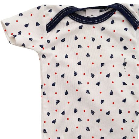 Body bébé mixte manches courtes blanc imprimé cœurs marines