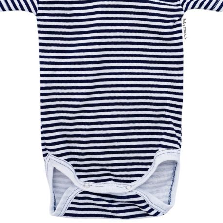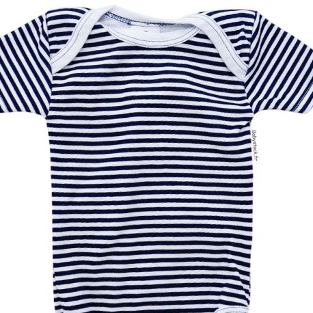 Body bébé mixte manches courtes en coton blanc rayures marines