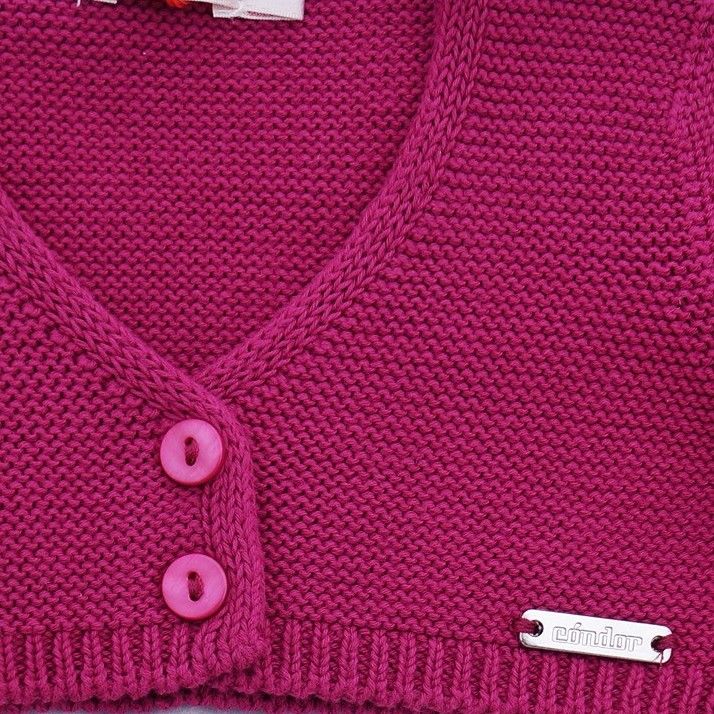 Boléro cardigan bébé fille en tricot maille mousse rose fushia