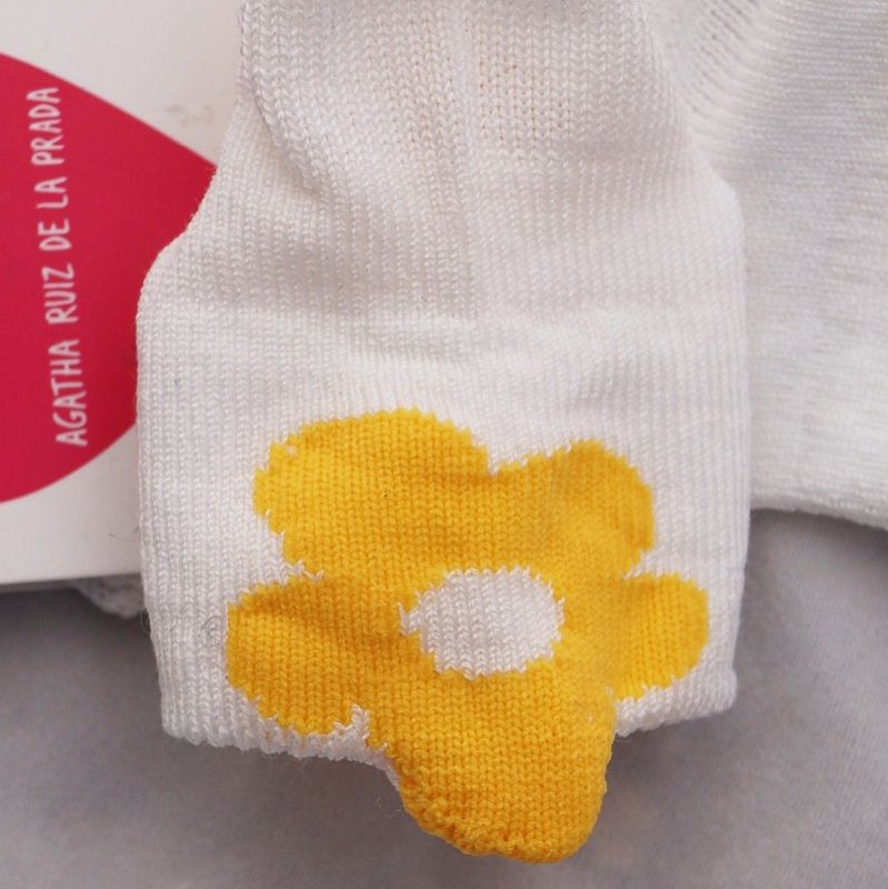 Chaussettes bébé courtes blanches et fleur jaune d'or