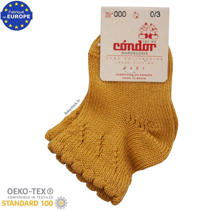 Chaussettes bébé fille en coton jaune moutarde motif ajouré