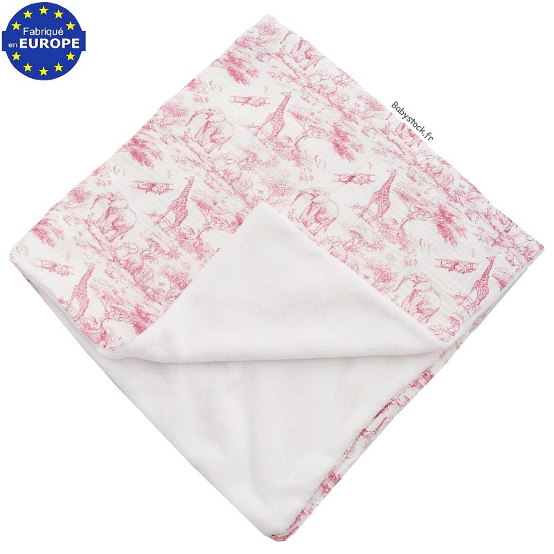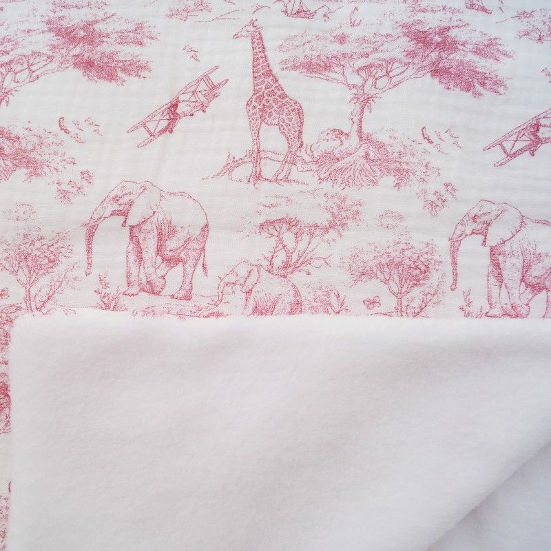 Couverture fille gaze imprimé Safari en Savane rose doublé fourrure