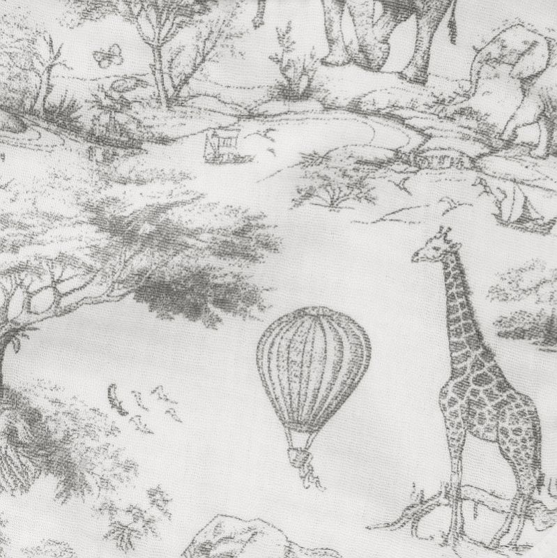 Couverture bébé gaze imprimé Safari en Savane gris doublé fourrure