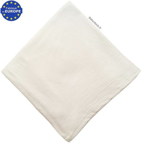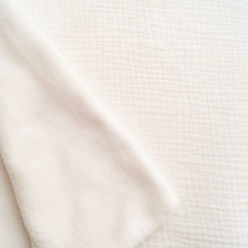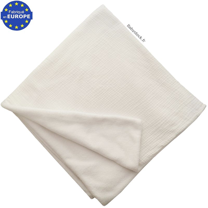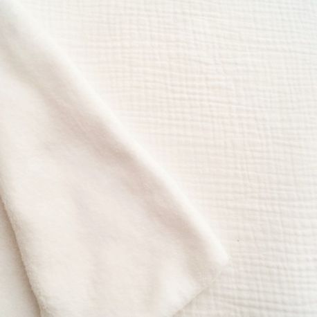 Couverture bébé en gaze coton écru doublée fourrure peluche