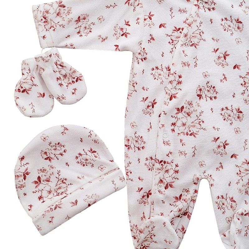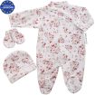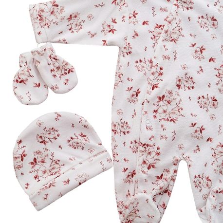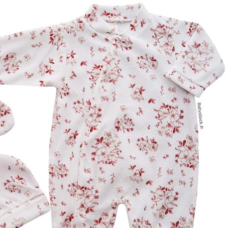Ensemble fille pyjama bonnet moufles velours blanc Fleurs rose