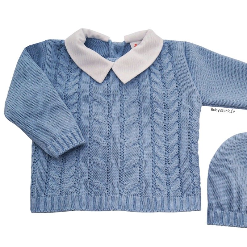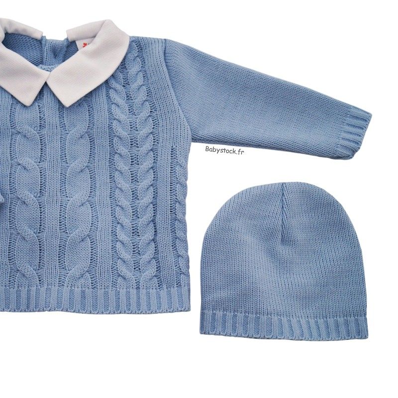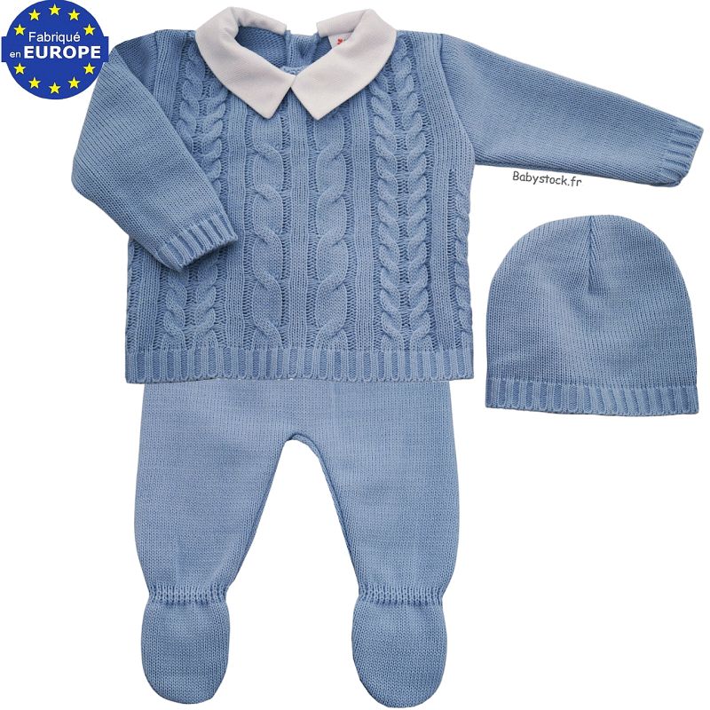 Ensemble garçon en maille torsades bleu denim col piqué 3 pièces Garçon Liste d'envies Craquant pour la naissance d'un garçon (1 mois - 56/58 cm) !Ensemble 3 pièces pour bébé garçon en maille toute douce bleu denim composé d'un haut à col, d'un pantalon à pieds et d'un bonnet.Pull brassière en maille tricot bleu denim, torsades sur tout le devant, petit col pointu en piqué de coton blanc, boutons bleu nacré dans tout le dos. Pantalon bleu en maille jersey, taille et chevilles en côtes pour un bon maintien et le confort de bébé. Bonnet forme cloche en maille jersey avec rappel bord en côtes.Composition : 100 % acrylique, lavable à 30°. Fabriqué en Europe (Portugal).Taille unique 1 mois (56-58 cm) Taille En Stock : Expédié en 24/48h Infos sur la livraison et les frais de port 18.99 € Quantité AJOUTER AU PANIER Babystock vous conseille également Ensemble garçon en maille torsades beige col piqué blanc 3 pièces Parfait pour la naissance d'un petit garçon (1 mois - 56/58 cm) ... Garçon 18.99 € Votre article a bien été ajouté au panier Quantité : × Partager et faites découvrir cet article par mail Vous souhaitez faire connaître ce produit à vos ami(e)s ?Inscrivez simplement leurs noms, prénoms, e-mails et votre message d'accompagnement.Ils pourront ainsi venir directement sur la page que vous avez sélectionnée. Nom(s) et/ou prénom(s) de vos ami(e)s E-mail de vos ami(e)s Votre nom et/ou prénom Votre E-mail Votre message d'accompagnement (1000 caractères maximum) : Nombre de caractères restants : Ne remplissez pas cette case
