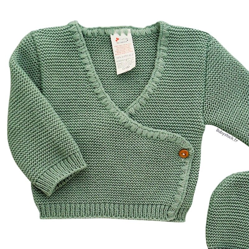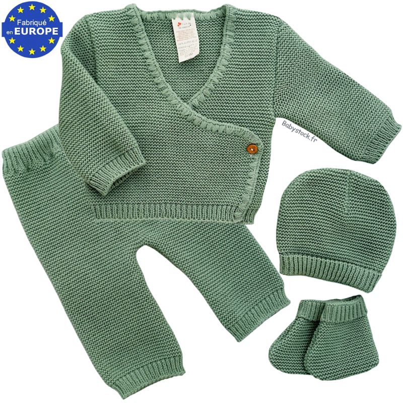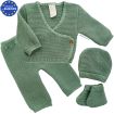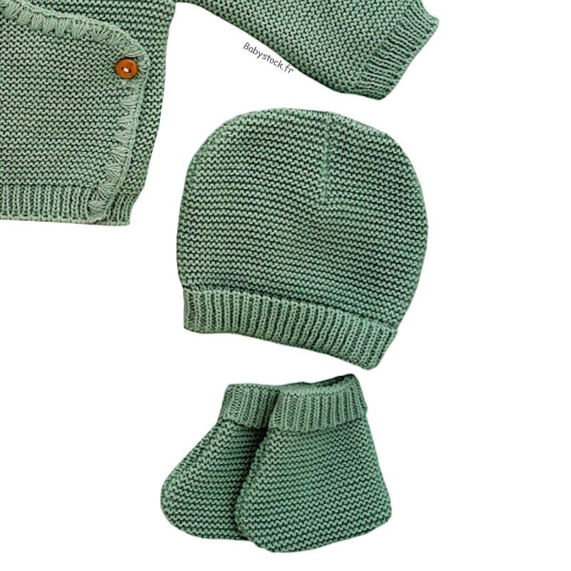 Ensemble maille 4 pièces brassière caleçon bonnet chaussons vert