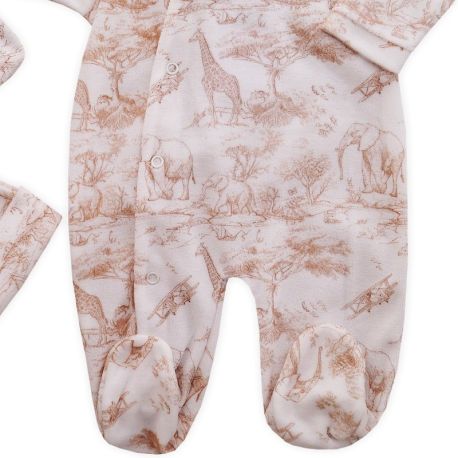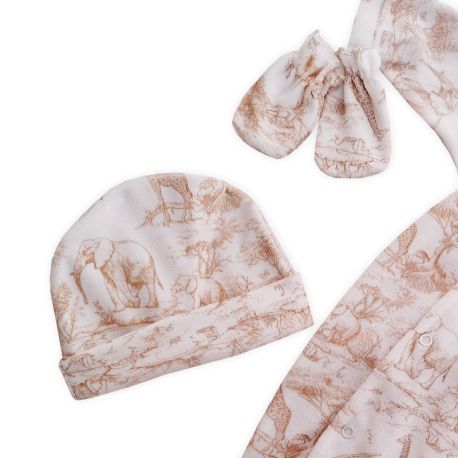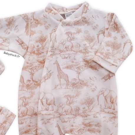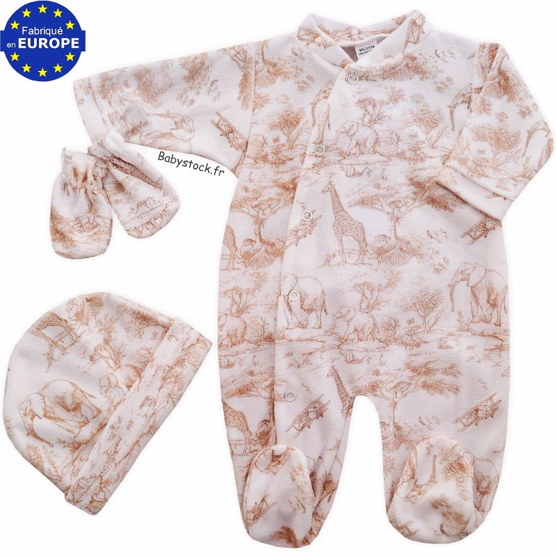Ensemble mixte pyjama bonnet moufles velours blanc Savane beige