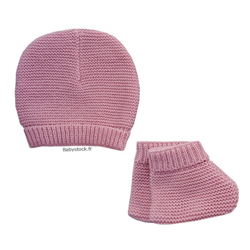 Ensemble maille fille 4 pièces brassière caleçon bonnet chaussons