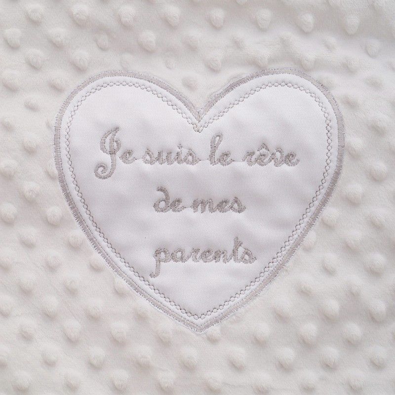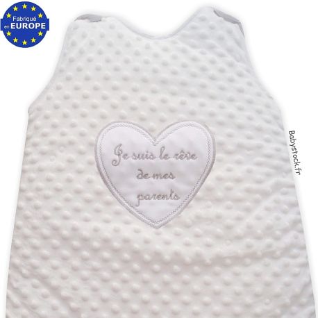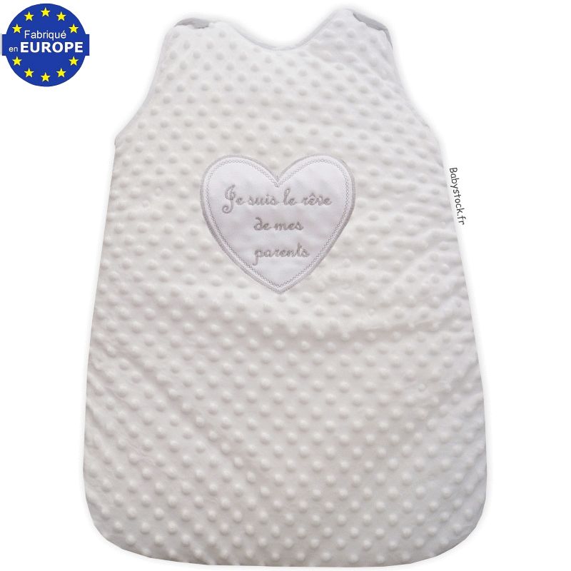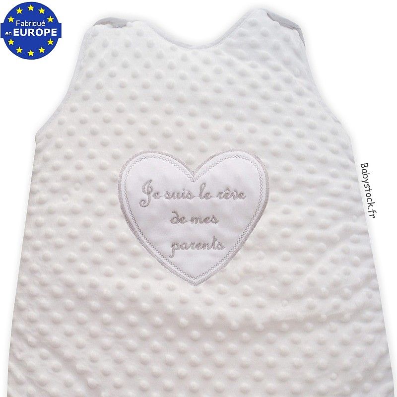 Gigoteuse bébé en fourrure blanche brodée Rêve de mes parents