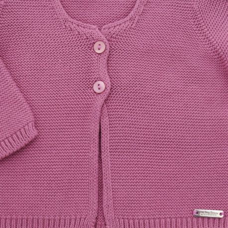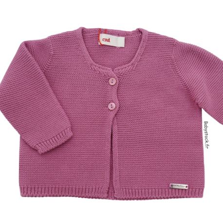 Gilet cardigan bébé fille en tricot maille mousse bois de rose