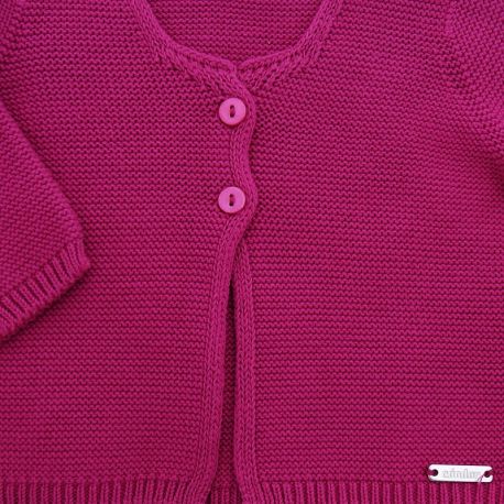 Gilet cardigan bébé fille en tricot maille mousse rose fushia