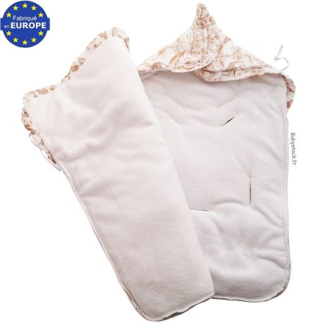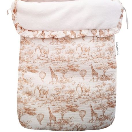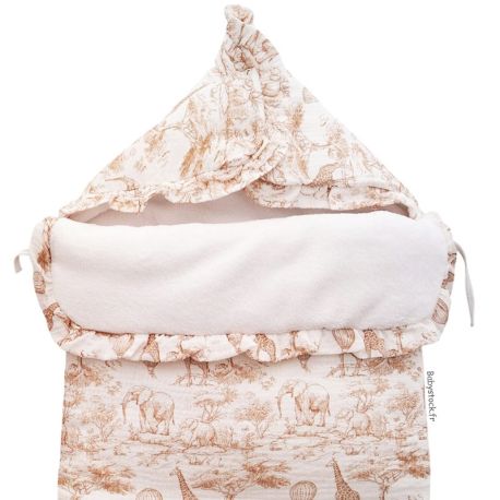 Nid d'ange siège-auto bébé doublé fourrure gaze imprimé Savane beige