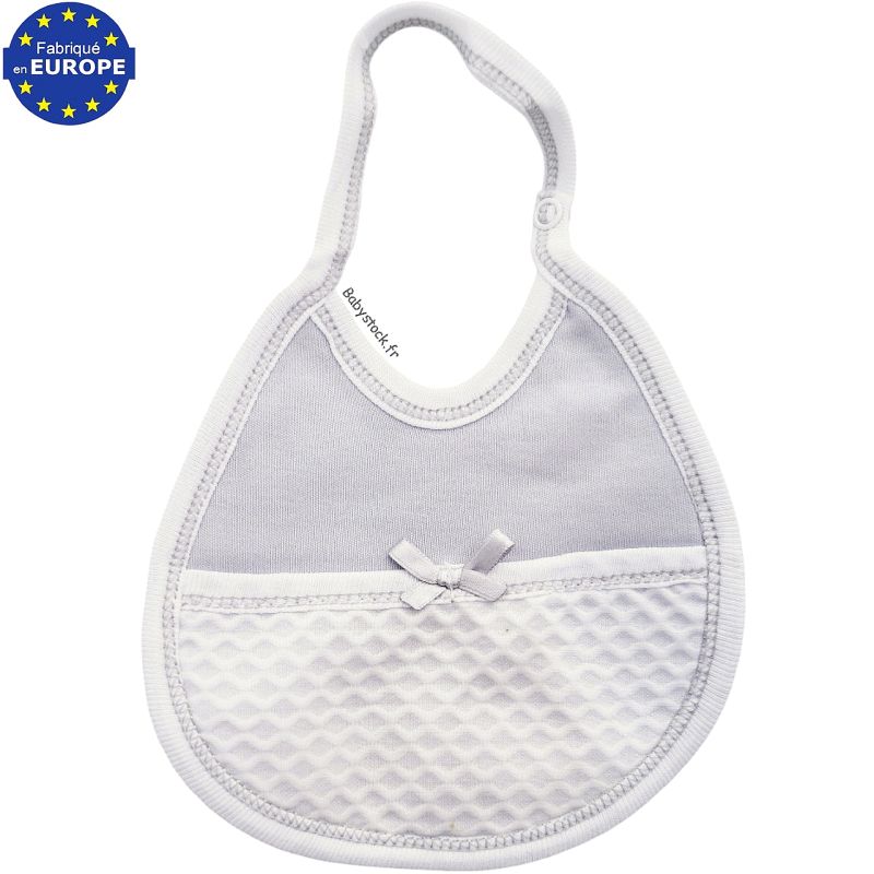 Petit bavoir naissance mixte jersey coton gris perle et piqué blanc