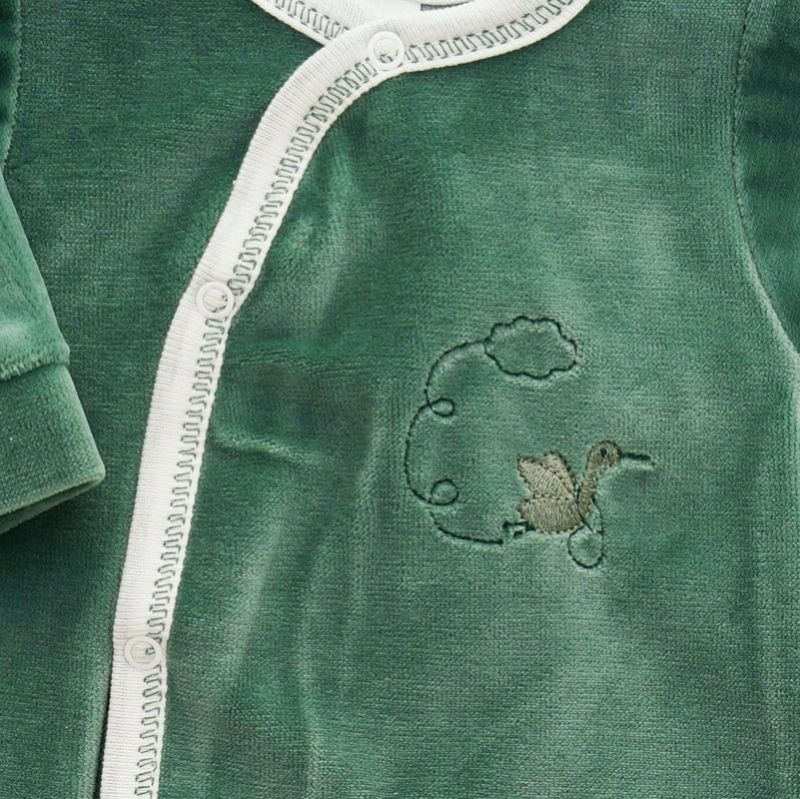 Pyjama préma mixte 43cm en velours vert brodé Cigogne