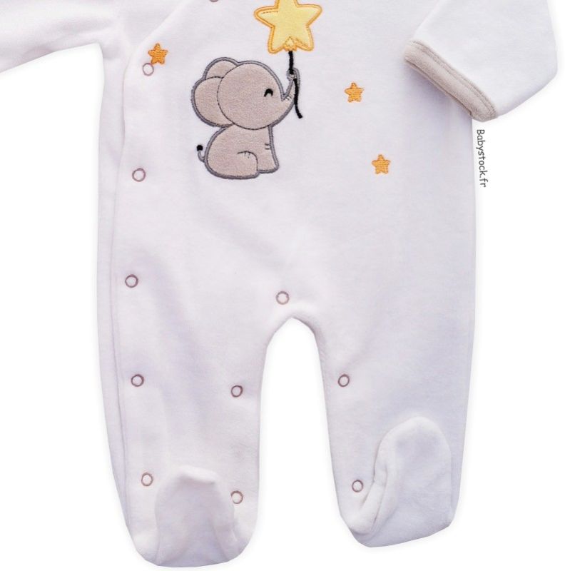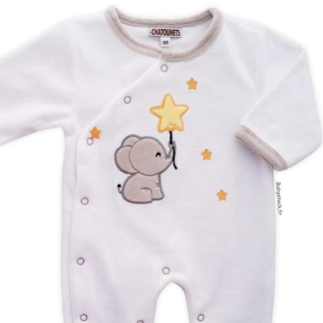 Pyjama dors bien mixte en velours blanc brodé Eléphanteau