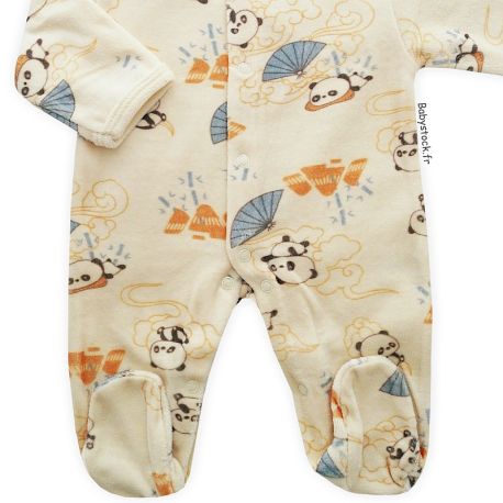 Pyjama dors bien unisexe en velours crème imprimé Panda