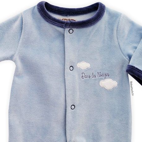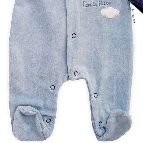 Pyjama préma bébé garçon (46-47cm) velours bleu brodé Nuages