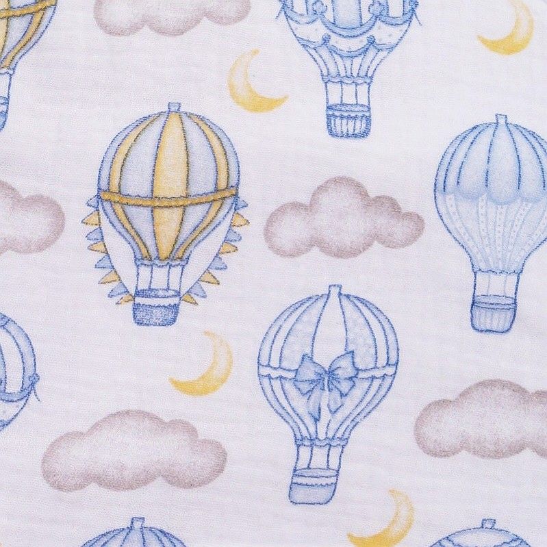 Sortie bain bébé garçon éponge et capuche gaze imprimé Montgolfière