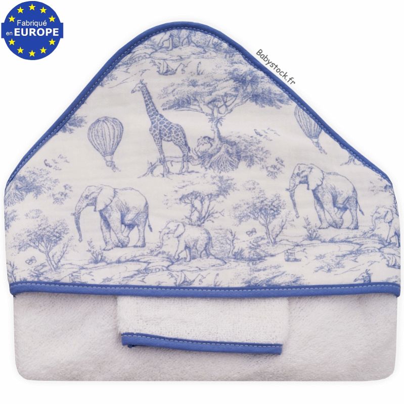 Sortie de bain bébé garçon en éponge et gaze imprimée Savane bleu